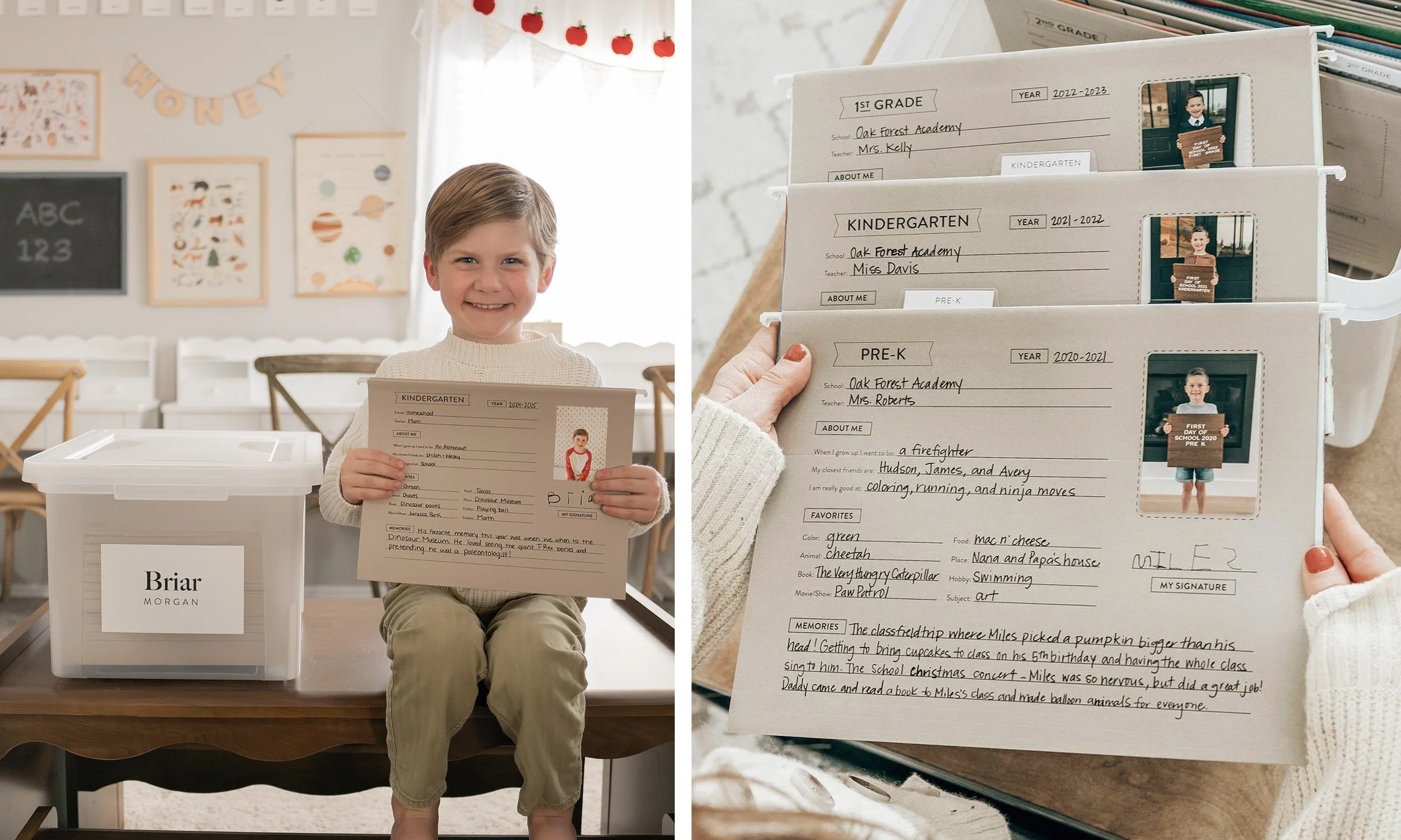 The School Years Memory Kit is a beautiful, easy-to-use children’s memory box to organize and save your little one’s mementos — all the way through high school.